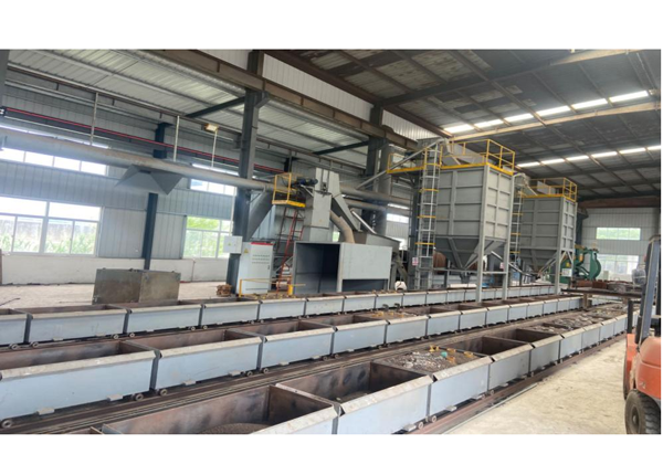 在建河南立德金屬材料科技有限公司3工位半自動消失模生產(chǎn)線、該線配置先進新型水浴滾筒、…